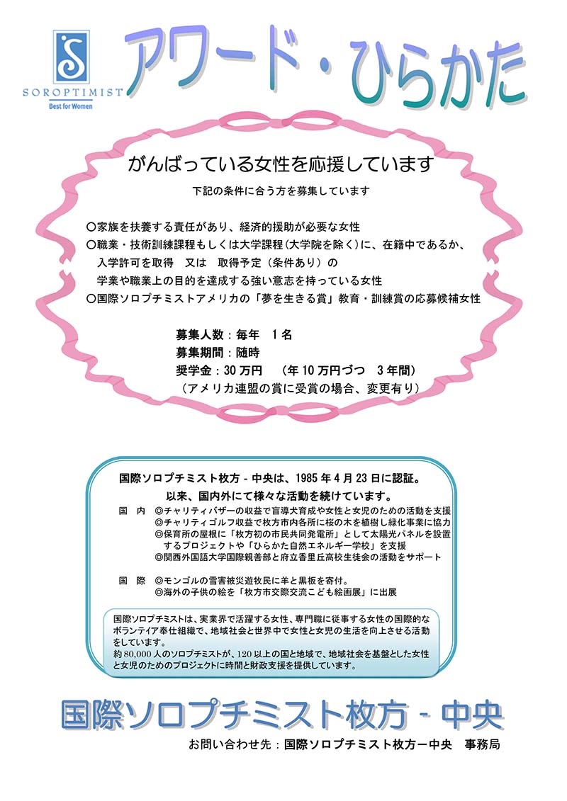 ソロプチミストはLiveYourドリーム賞として、教育、技能、雇用を改善するために必要な経済的支援や機会を設ける支援を行っています。